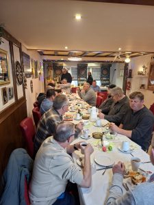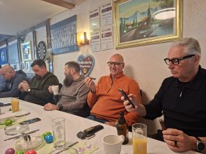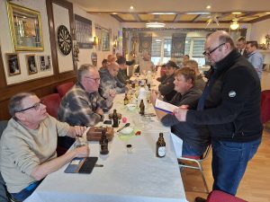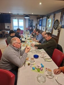 In der Gaststätte war schon eingedeckt und einiges vorbereitet. Nach und nach kamen insgesamt 22 Vereinsmitglieder, wobei 21 am Frühstück und 16 am Rauchen teilnahmen.