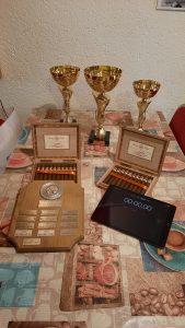 Neben den Wanderpreis, der jährlich an den Sieger übergeben wird, gab es auch wieder für die ersten drei Sieger einen Pokal. Und …. eine besondere Zigarre für den Sieger aus dem Humidor von Hauke.