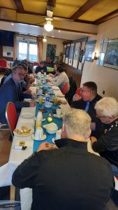 In der Gaststätte war schon eingedeckt und einiges vorbereitet. Nach und nach kamen insgesamt 18 Vereinsmitglieder zum Frühstück, von denen 15 am rauchen teilnahmen.