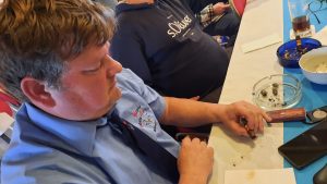 Nach dem Frühstück stellte Hauke Walter, unser dreimaliger Weltmeister im Zigarren langsam rauchen,  den Teilnehmern die Zigarre, aus der Manufaktur „Rocky Partel“ zur Verfügung, mit der er sich 2023 und 2024 den Weltmeistertitel errauchte.