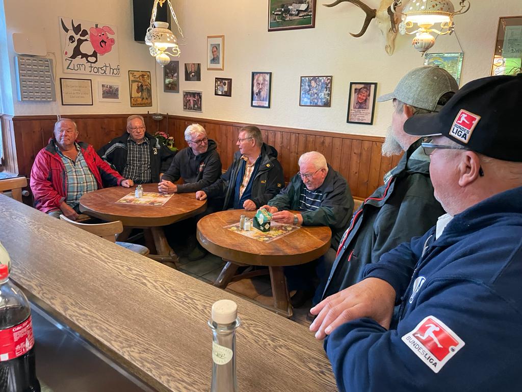 Nach einem längeren Aufenthalt ging es noch zum Forsthof, wo noch eine Runde zu Lasten der Vereinskasse getrunken und besungen wurde. Hierbei ist anzumerken, dass der Gesang sehr zu wünschen übrig ließ.